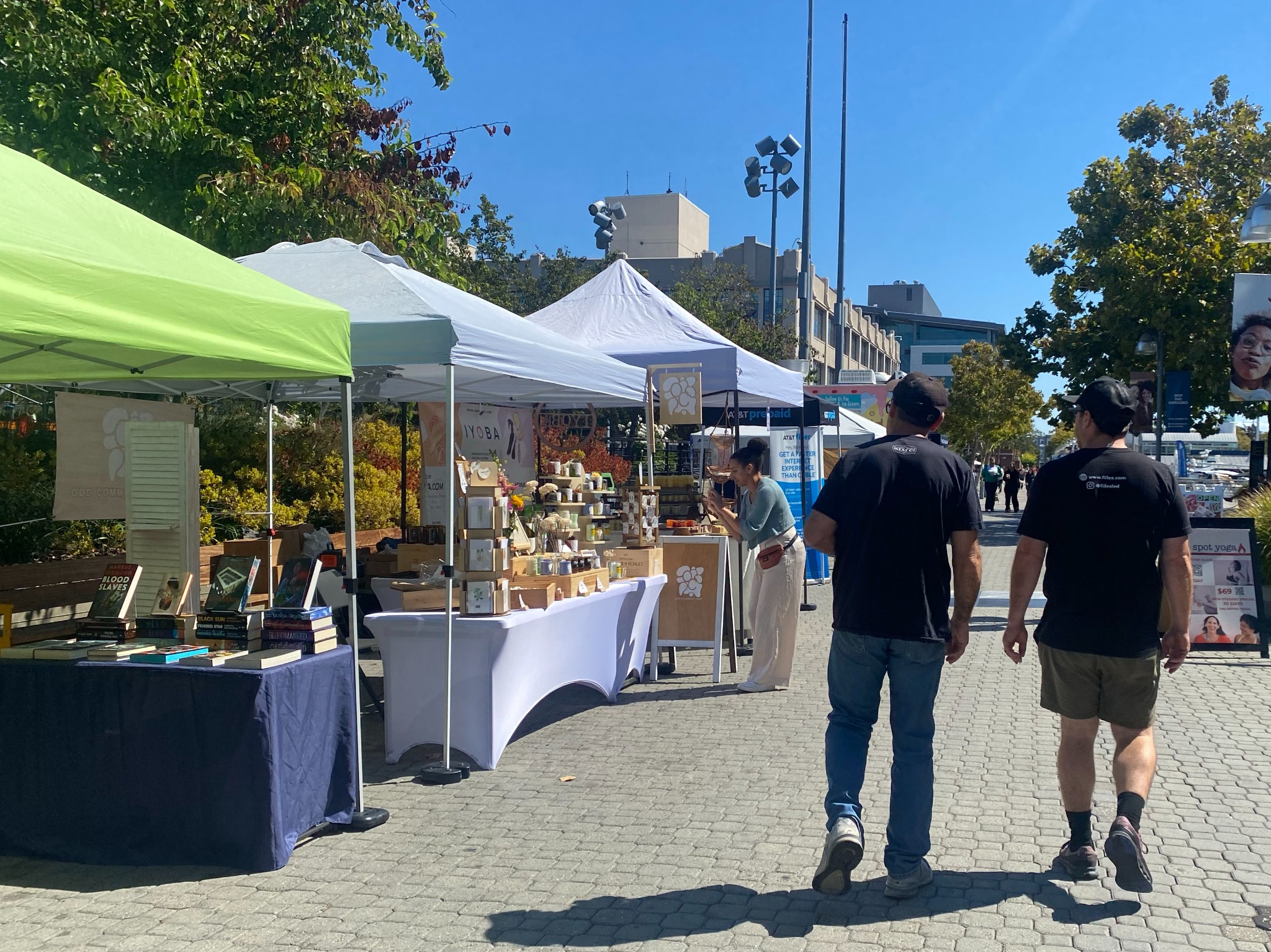 People visit a variety of stands displayed at the Jack London Square Farmers Market in Oakland, Ca on Sunday, Sept. 21, 2025. The market occurs every Sunday and has been operating since 1989. (Angella Dorado)