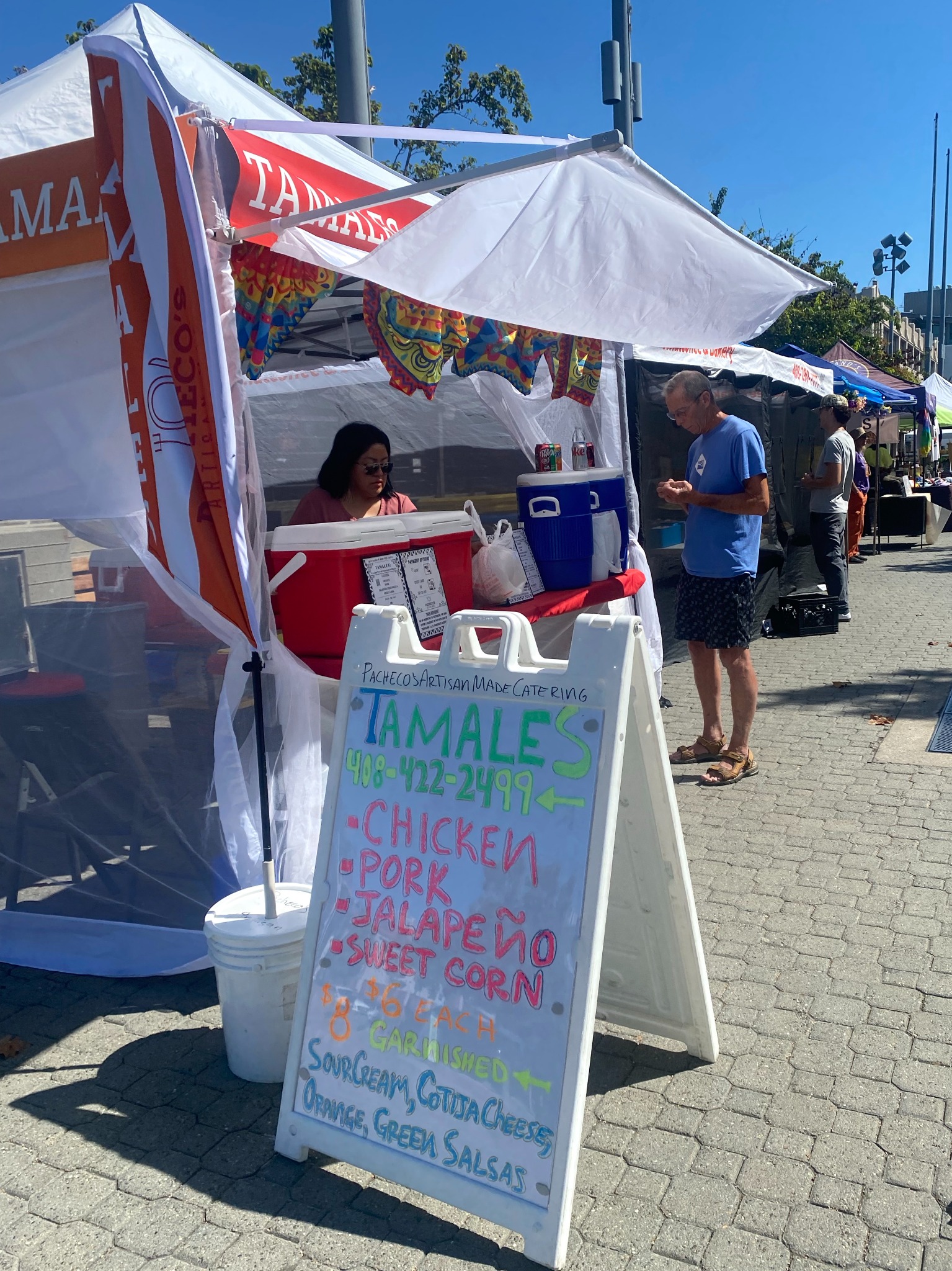 A menu is displayed by Pacheco's Artisan Made's stand while a customer waits for his food as the vendor prepares it on Sunday, Sept. 21, 2025. (Angella Dorado)