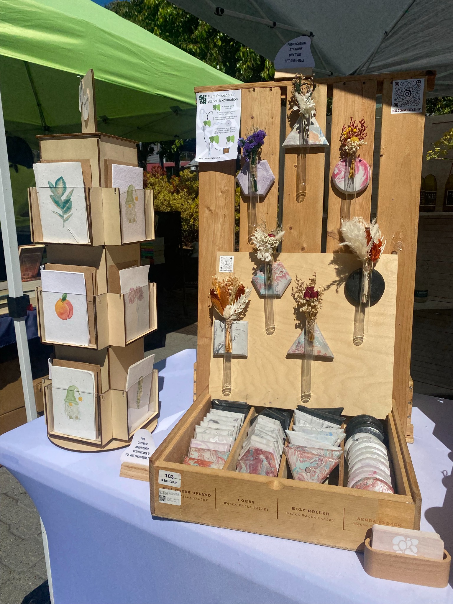 Blank cards and plant propagation stations are displayed at the Odd Commodities Shop stand on Sunday, Sept. 21, 2025. (Angella Dorado)