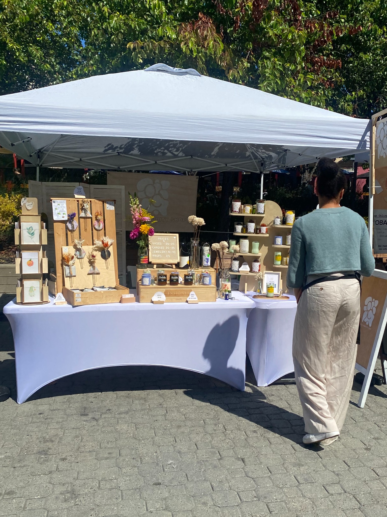 Soaps and other beauty products are displayed at IYOBA's stand on Sunday Sept. 21, 2025. The company is based in Oakland and sells organic beauty products. (Angella Dorado)